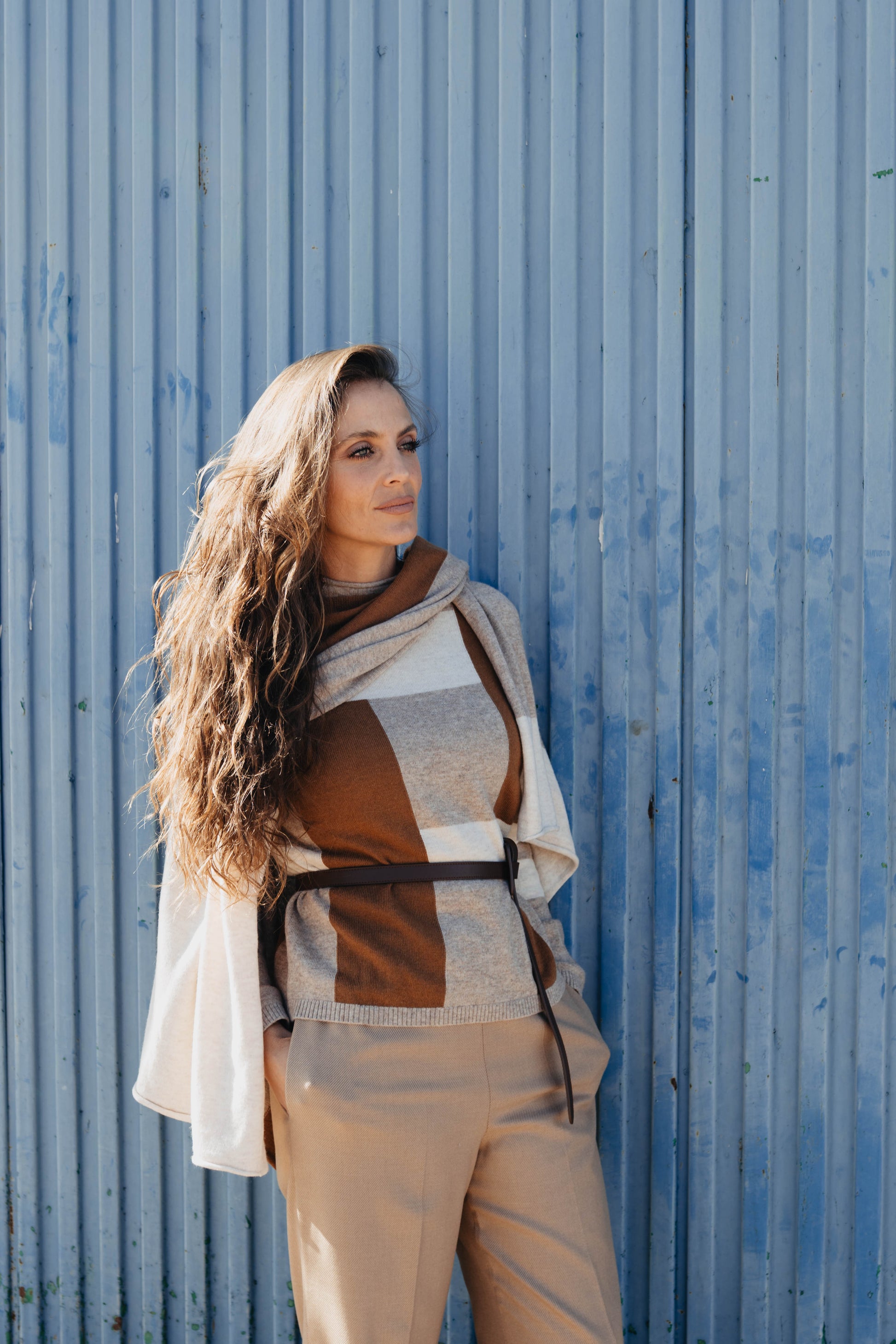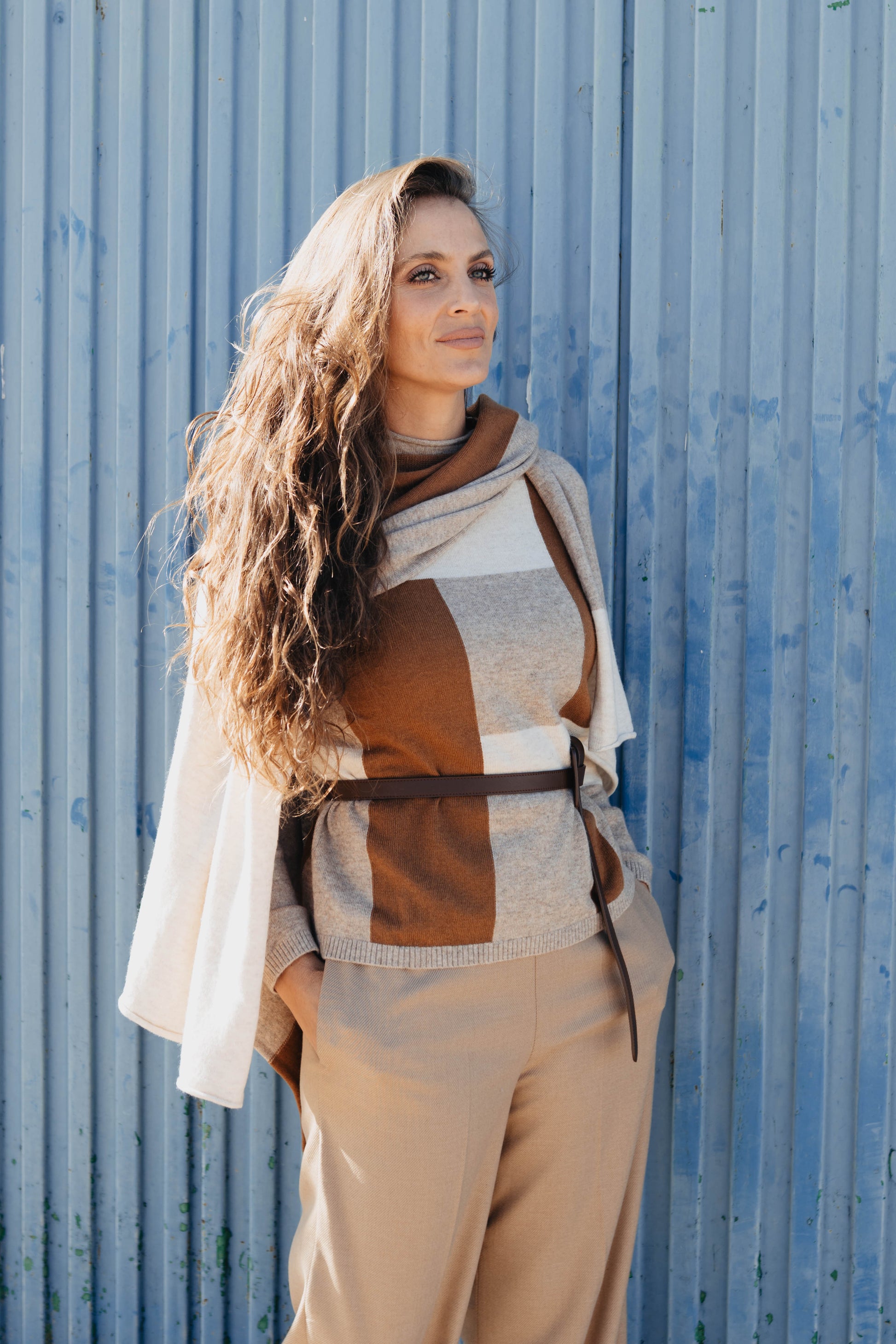 Jersey cuello chimenea ,con estola en mismo estampado geométrico